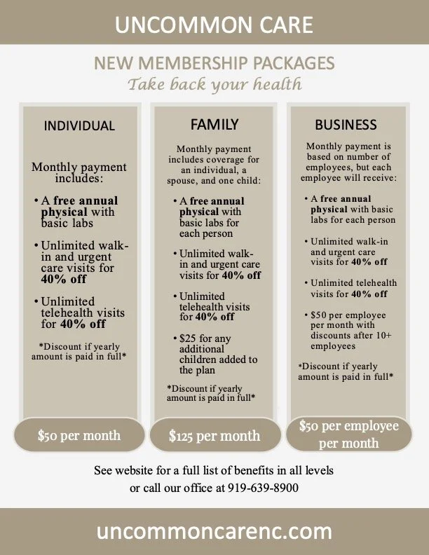 Uncommon Care is now offering memberships!! See the flyer below and our membership tab above for more information!